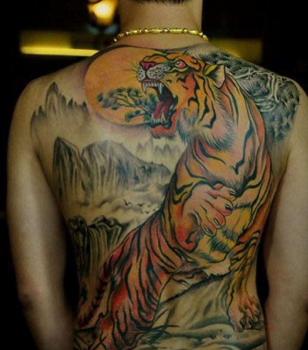 霸气半胛老虎纹身_动物纹身图案大全_纹身图吧