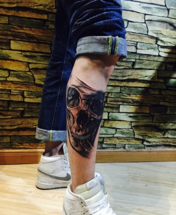 潮流酷炫的腿部骷髅纹身
