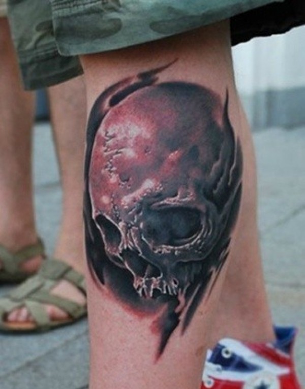 潮流酷炫的腿部骷髅纹身