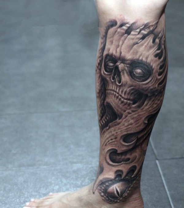 超帅时尚的黑灰骷髅与蛇纹身图案
