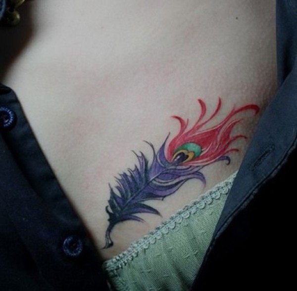 彩色羽毛胸部纹身图案大全