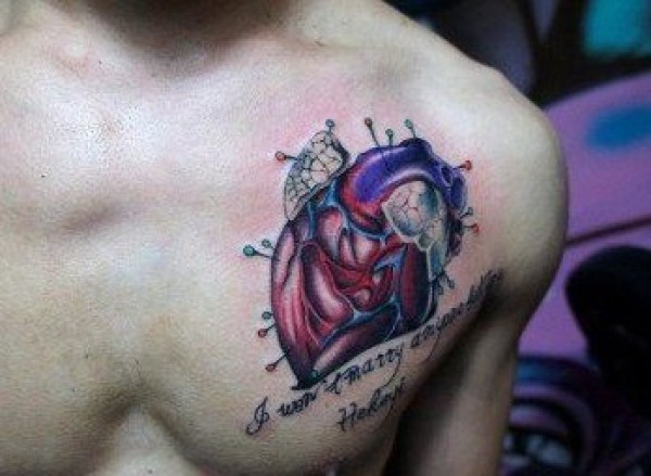 极具创意的胸前心脏纹身图案