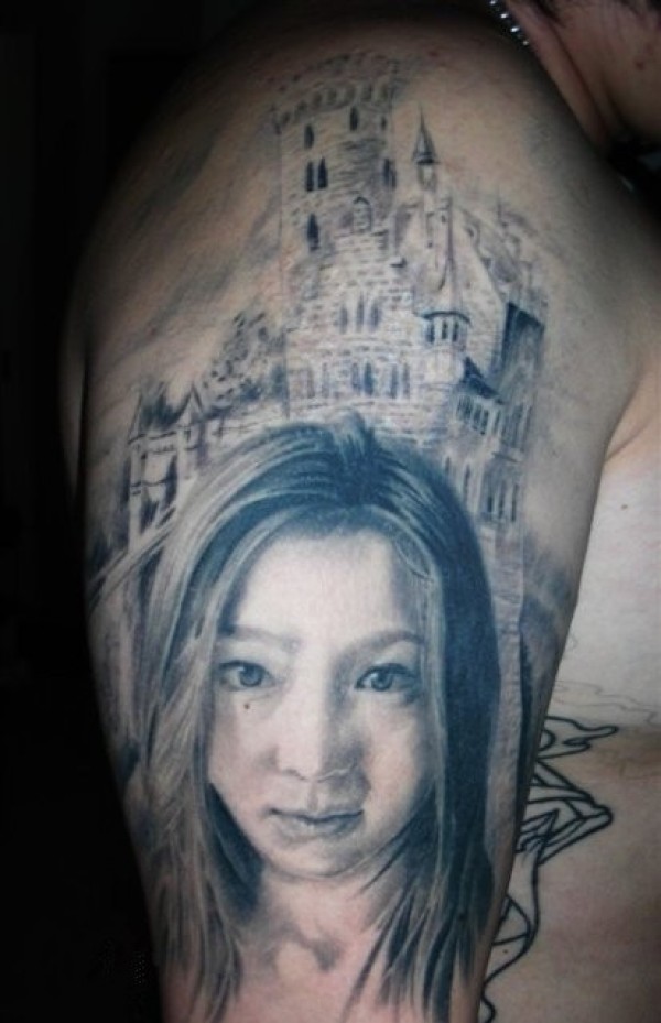 女性肩部肖像刺青_肖像纹身图案大全_纹身图吧
