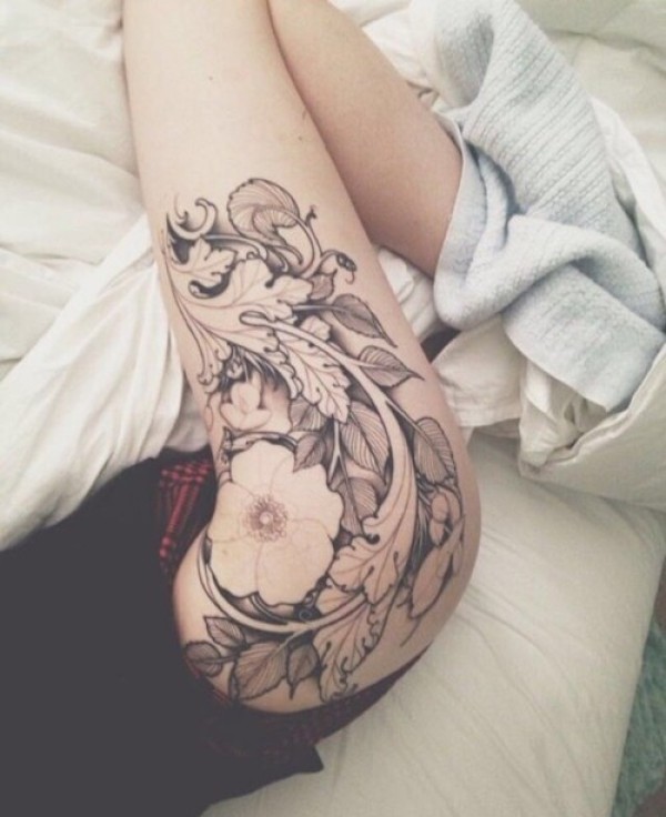 传统花腿纹身--18张传统风格的大花腿纹身图案作品