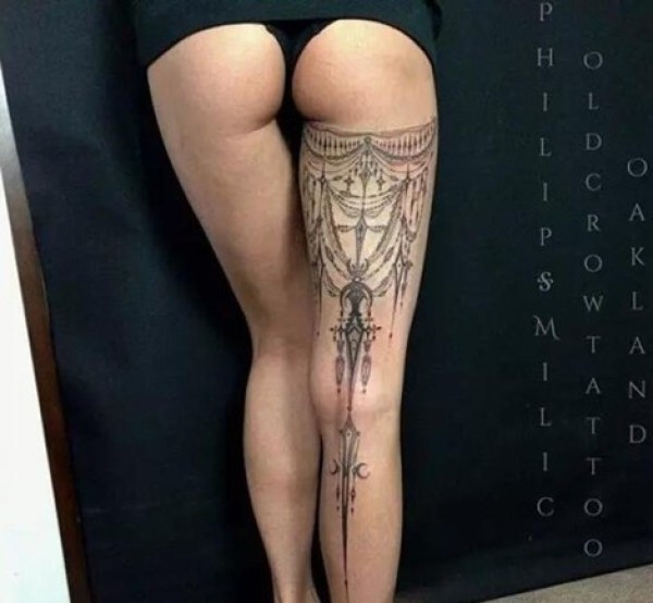 传统花腿纹身--18张传统风格的大花腿纹身图案作品