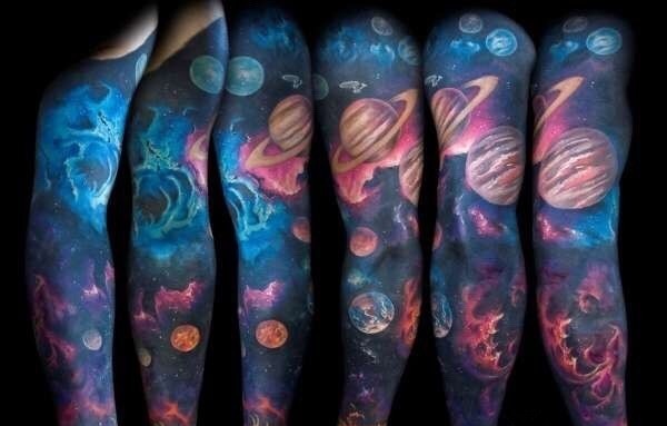 绚丽多彩的宇宙星空花臂纹身