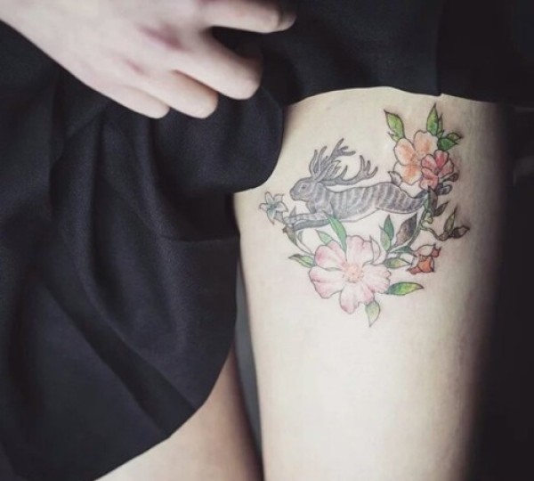 女孩腿部唯美刺青_腿部纹身图案大全_纹身图吧
