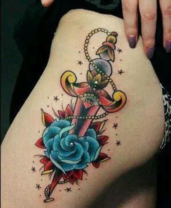传统花腿纹身--18张传统风格的大花腿纹身图案作品