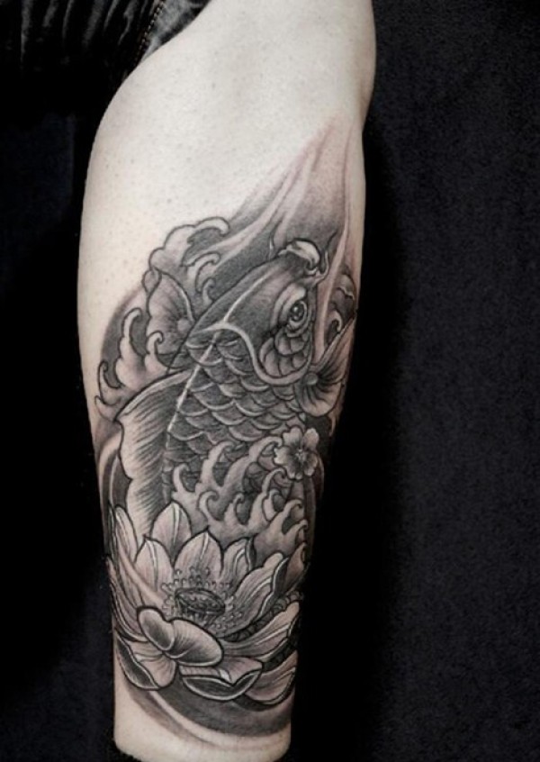 传统鲤鱼花小腿纹身_腿部纹身图案大全_纹身图吧