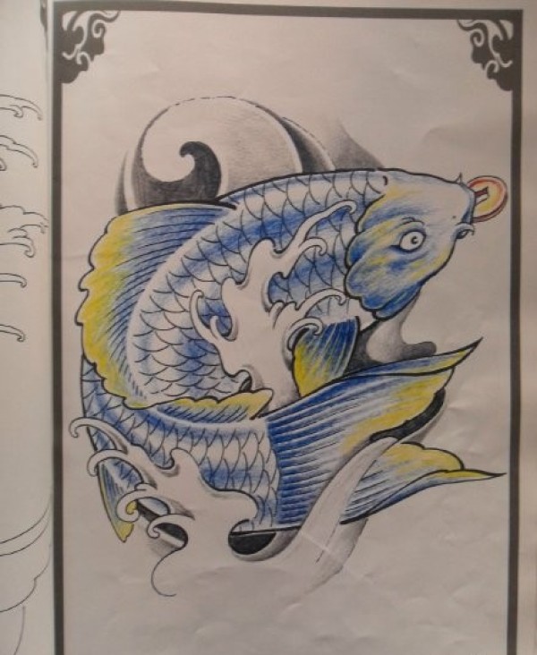 经典传统的鲤鱼纹身手稿