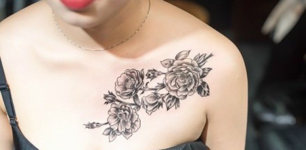 女性大花胸纹身_43张霸气漂亮的女性大花胸纹身图案作品
