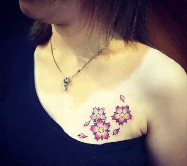 清新花朵鲜花性感胸部纹身