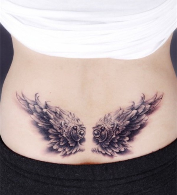 女生后腰纹身黑白灰风格抽象线条纹身图案