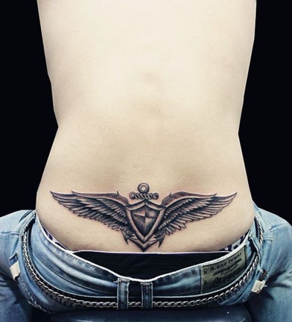 女生后腰纹身黑白灰风格抽象线条纹身图案
