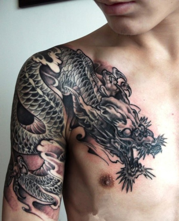 深受男士喜爱的威武凶猛的过肩龙纹身