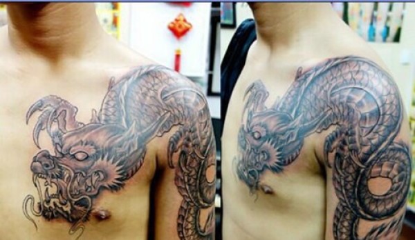 深受男士喜爱的威武凶猛的过肩龙纹身