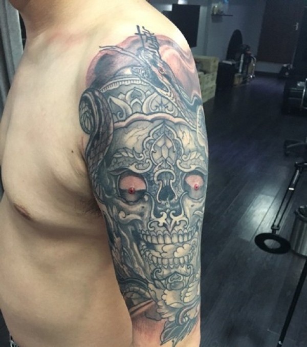 个性手臂悲伤的骷髅纹身图案图案图片_骷髅纹身图案大全_纹身图吧