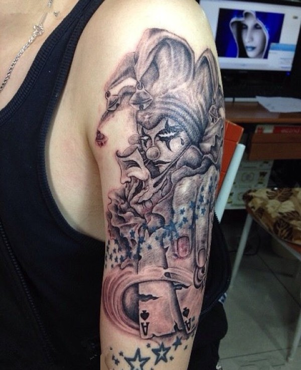 一套个性的大臂上小丑纹身图案