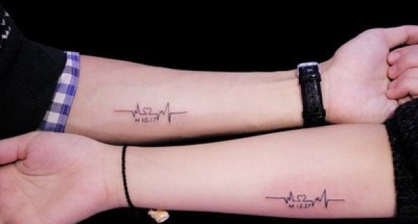 喜欢就要大声说出来 个性情侣心电图纹身