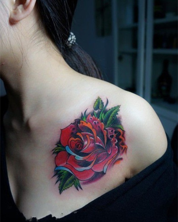 艳丽迷人的红玫瑰纹身