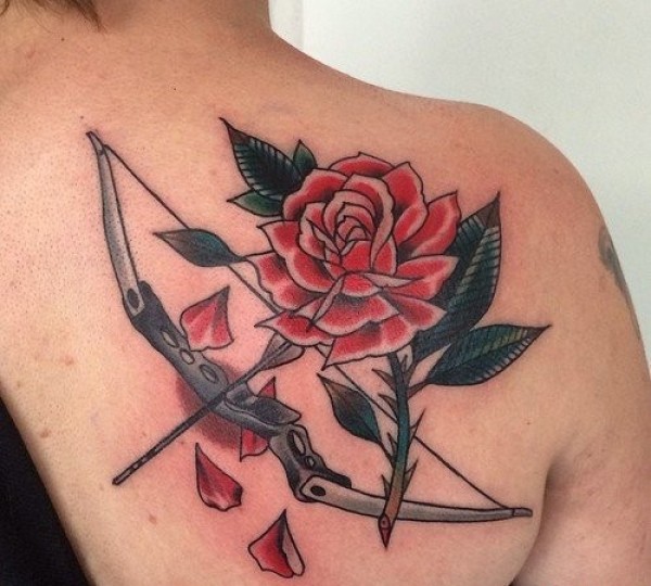 欧美玫瑰纹身 男生手臂上花朵纹身图片