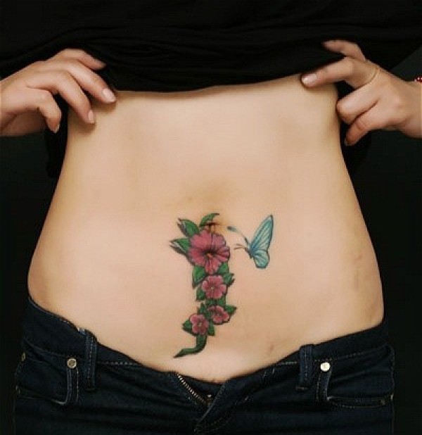 分享一款腰部时尚性感的蝶恋花纹身图案_腰部纹身图案大全_纹身图吧