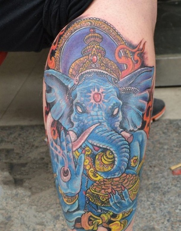 腿部传统经典象神纹身