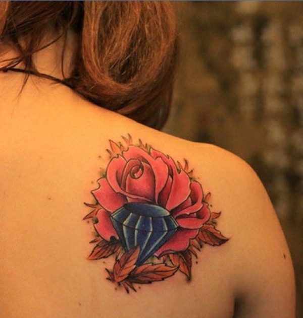 女生肩花纹身_15张女性双肩对称的肩花纹身图案作品图片