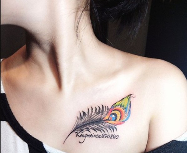 女生唯美的孔雀翎孔雀羽毛纹身