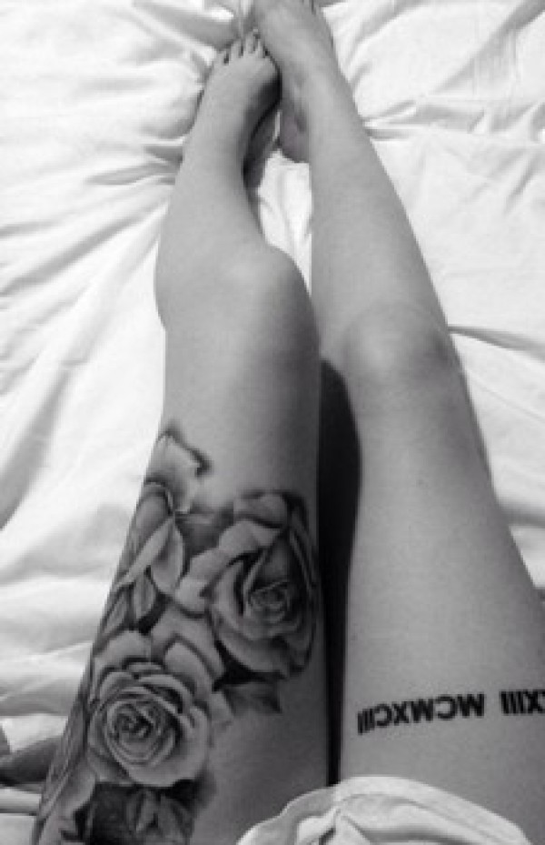 女孩腿部唯美刺青_腿部纹身图案大全_纹身图吧