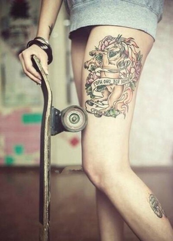 传统花腿纹身--18张传统风格的大花腿纹身图案作品