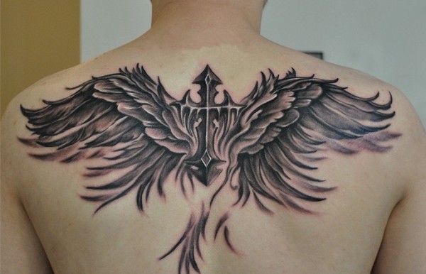 潮男钟爱的背部十字架纹身图案