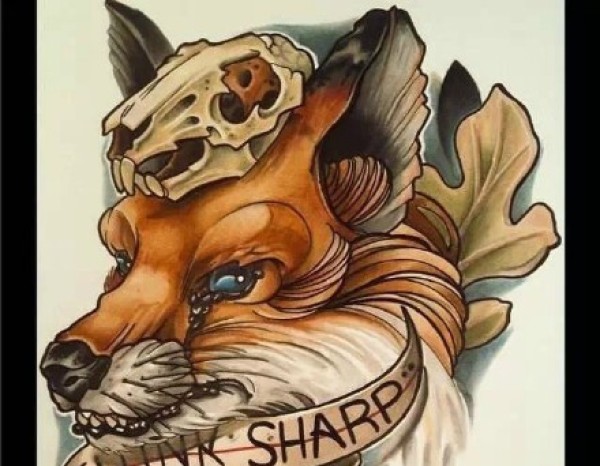 一组16张狐狸纹身手稿素材图案