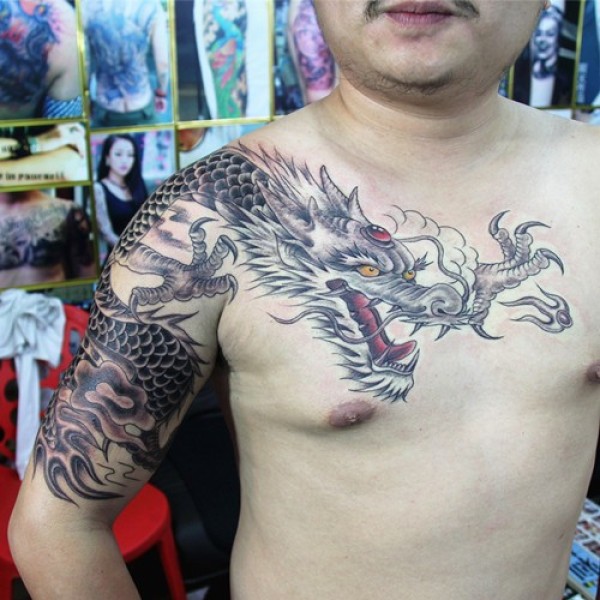 日式手彫刺青作品—半甲龙很感谢客户认可手彫刺青,手彫是日本纹身的手工雕刻技术,时间可以追溯到日本17世纪的江户时代。19世纪,手彫技术被日本黑帮挪用,被用作入会仪式,象征着从此就是江湖中人。在日式传统