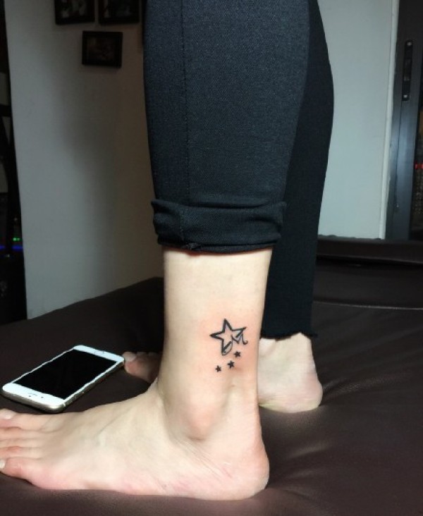 时尚的小清新脚踝星星纹身