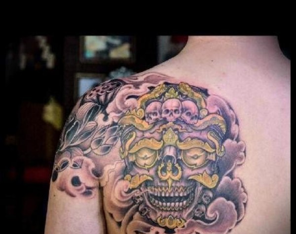 女生肩花纹身_15张女性双肩对称的肩花纹身图案作品图片
