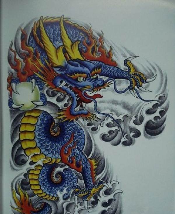 龙纹身手稿_一组老传统黑灰龙手稿纹身图案