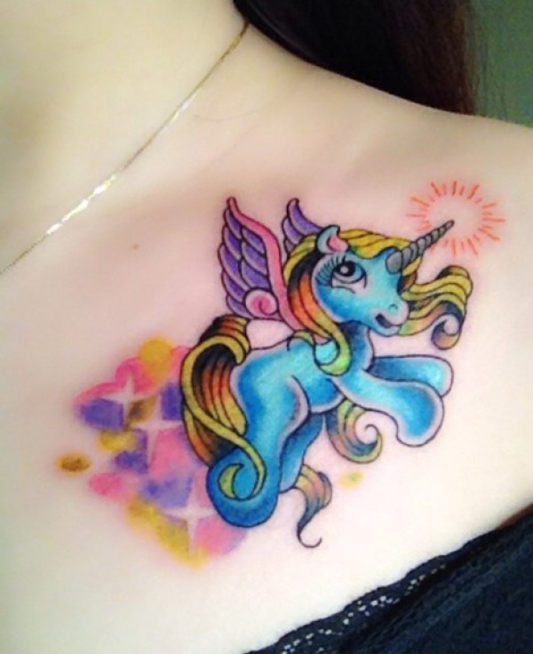 可爱漂亮的彩色独角兽纹身图案