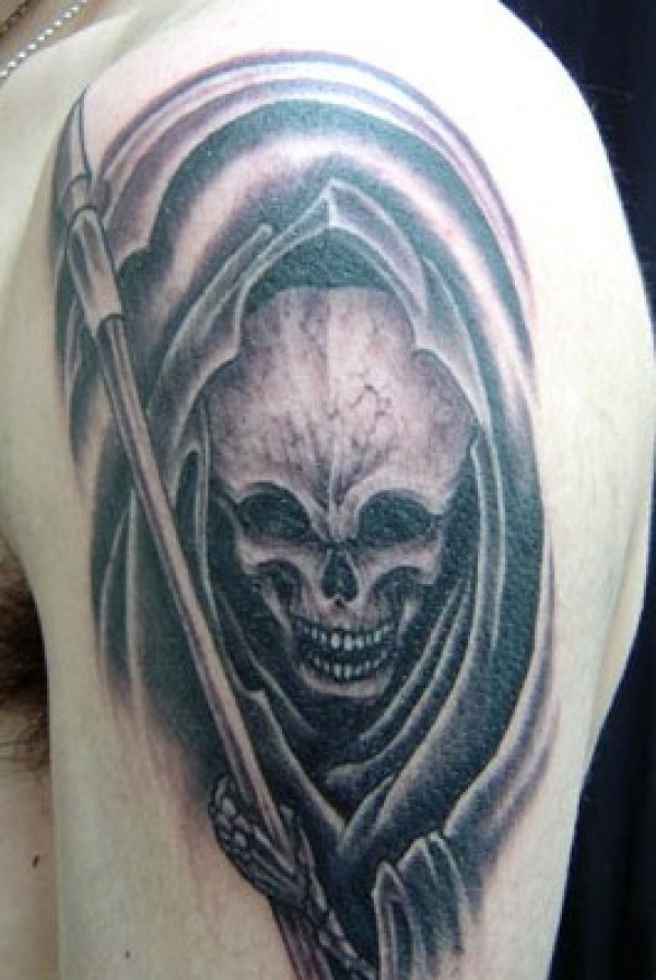 手臂处酷炫的死神纹身