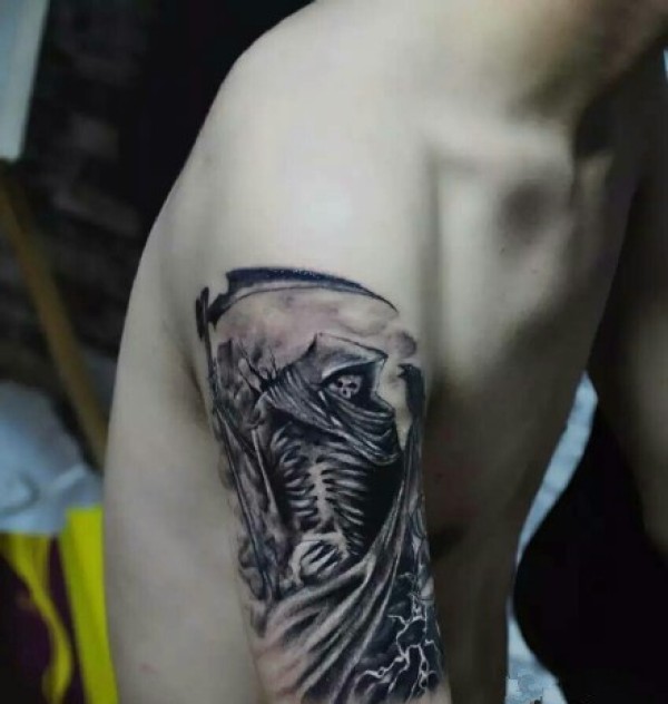 手臂处酷炫的死神纹身