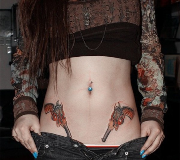 分享一款腰部时尚性感的蝶恋花纹身图案_腰部纹身图案大全_纹身图吧