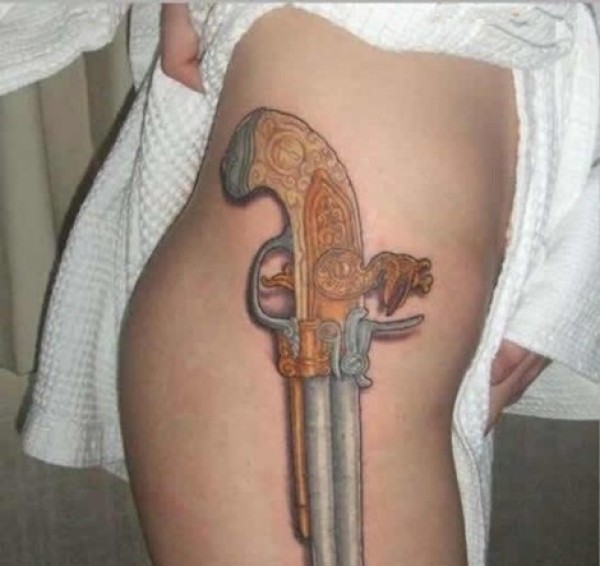 分享一款腰部时尚性感的蝶恋花纹身图案_腰部纹身图案大全_纹身图吧