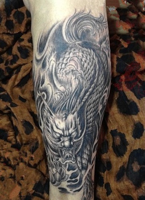 花腿纹身--一组大黑腿纹身图案作品欣赏