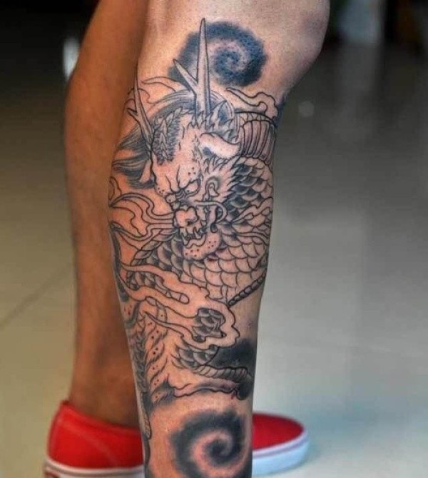 花腿纹身--一组大黑腿纹身图案作品欣赏