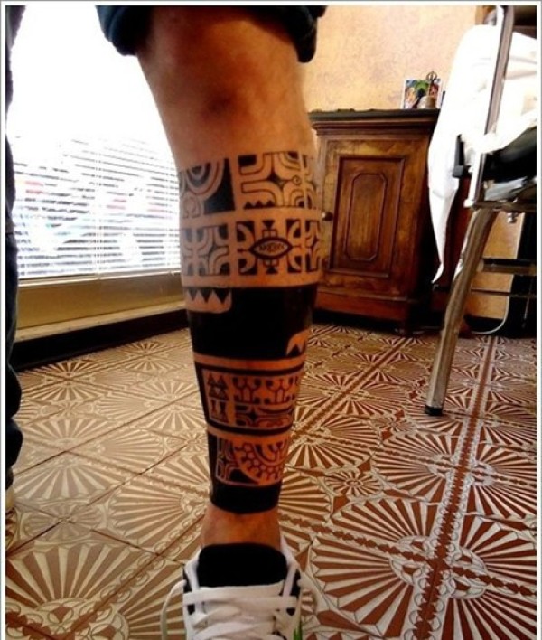 花腿纹身--一组大黑腿纹身图案作品欣赏