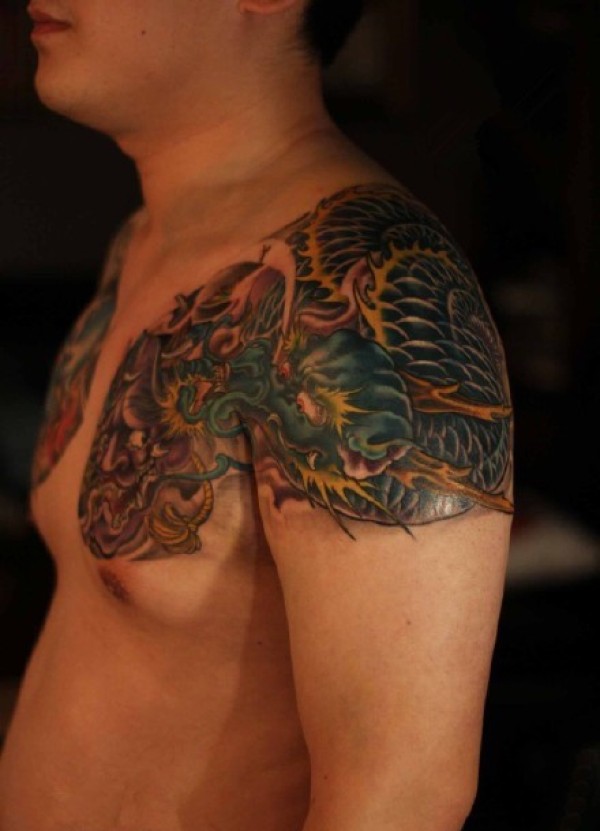 霸气过肩龙半甲纹身