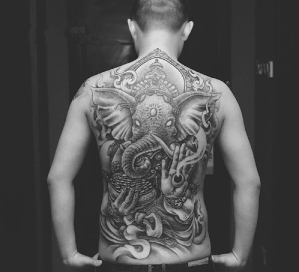 传统经典的象神满背纹身