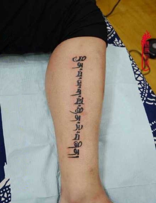 腿部时尚的梵文纹身