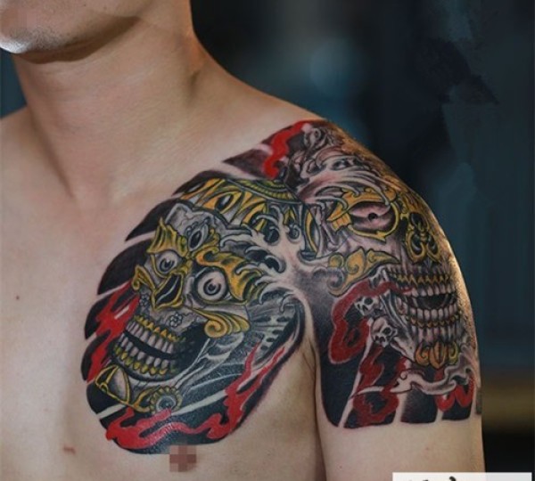 能面万媚纹身手稿_52张日式能剧面具纹身手稿图案素材欣赏