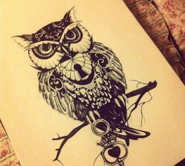 个性时尚的猫头鹰纹身素材手稿